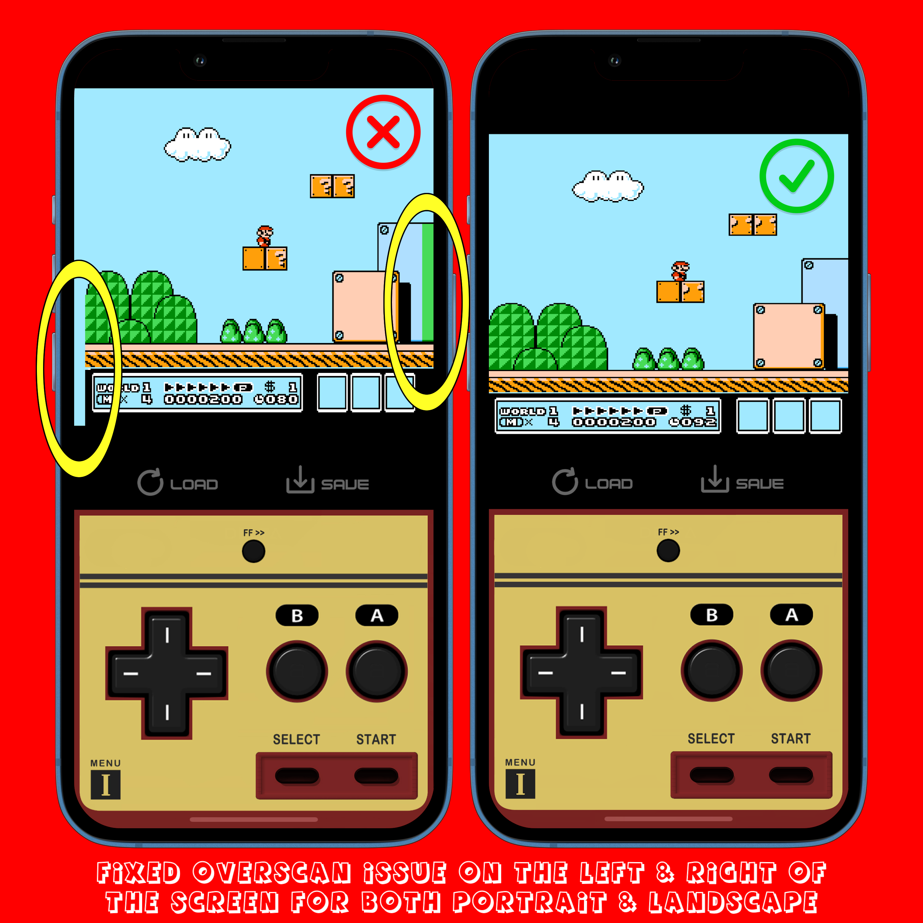 v1.2 - Fixed overscan issue in portrait & landscape with the sides of the screen most visable with Super Mario Bros. 3