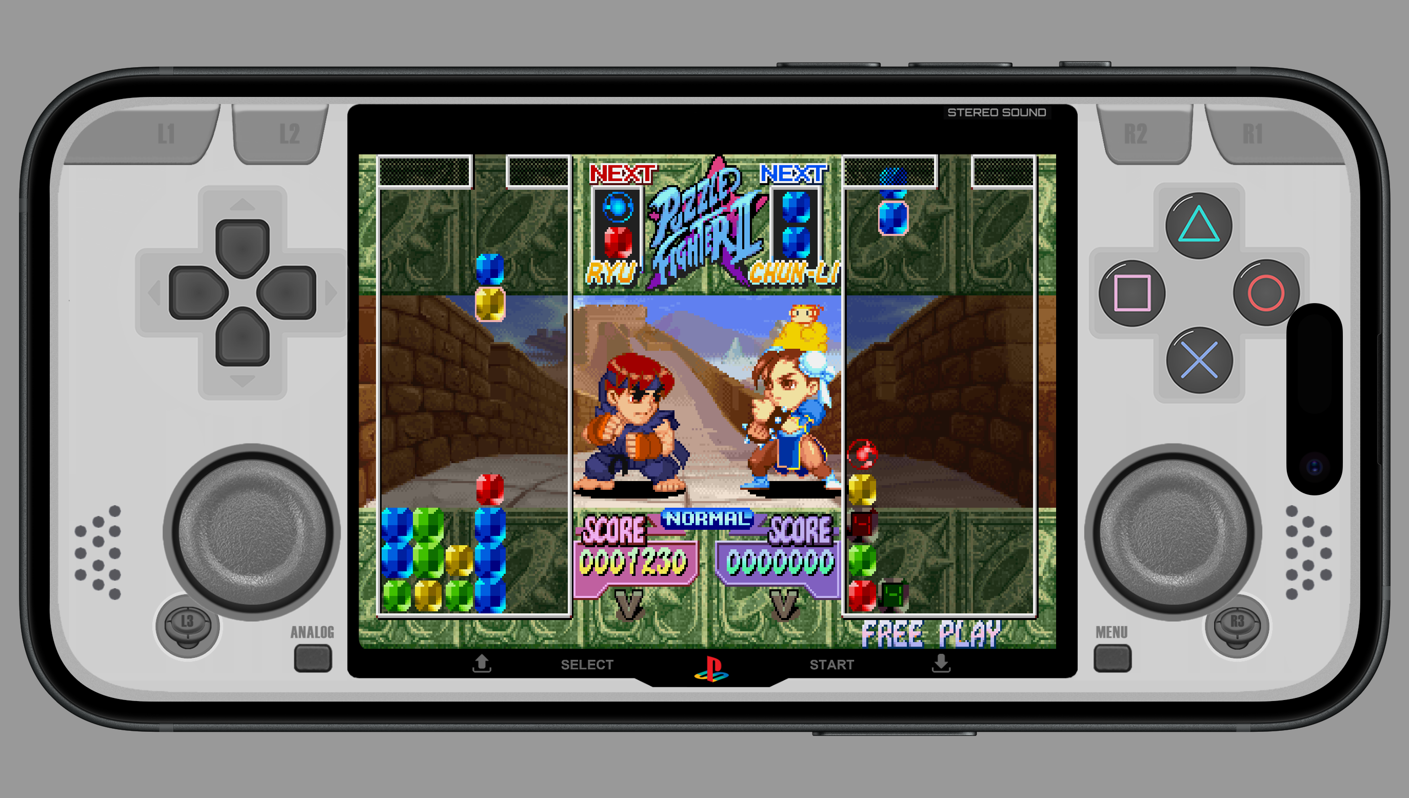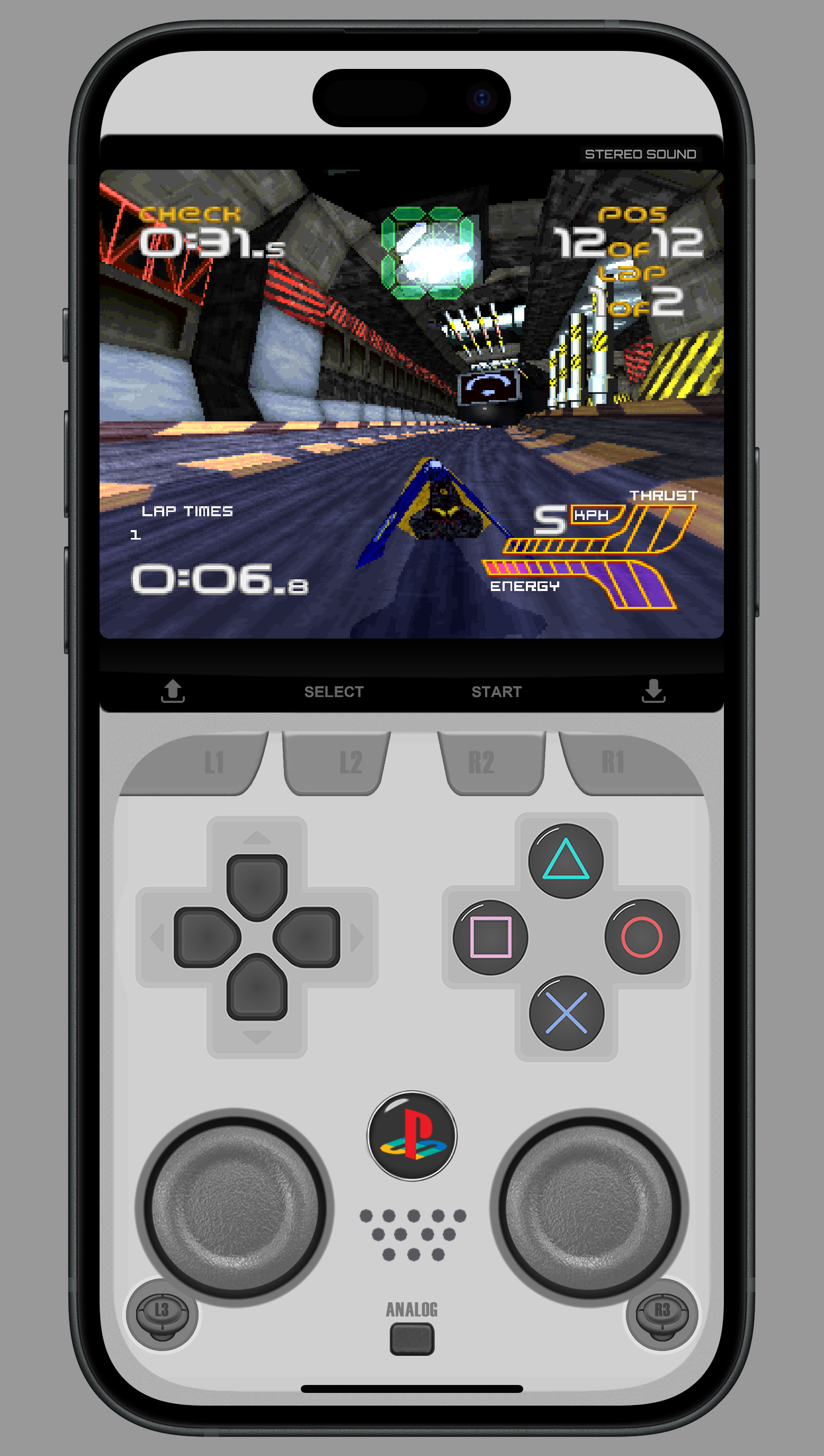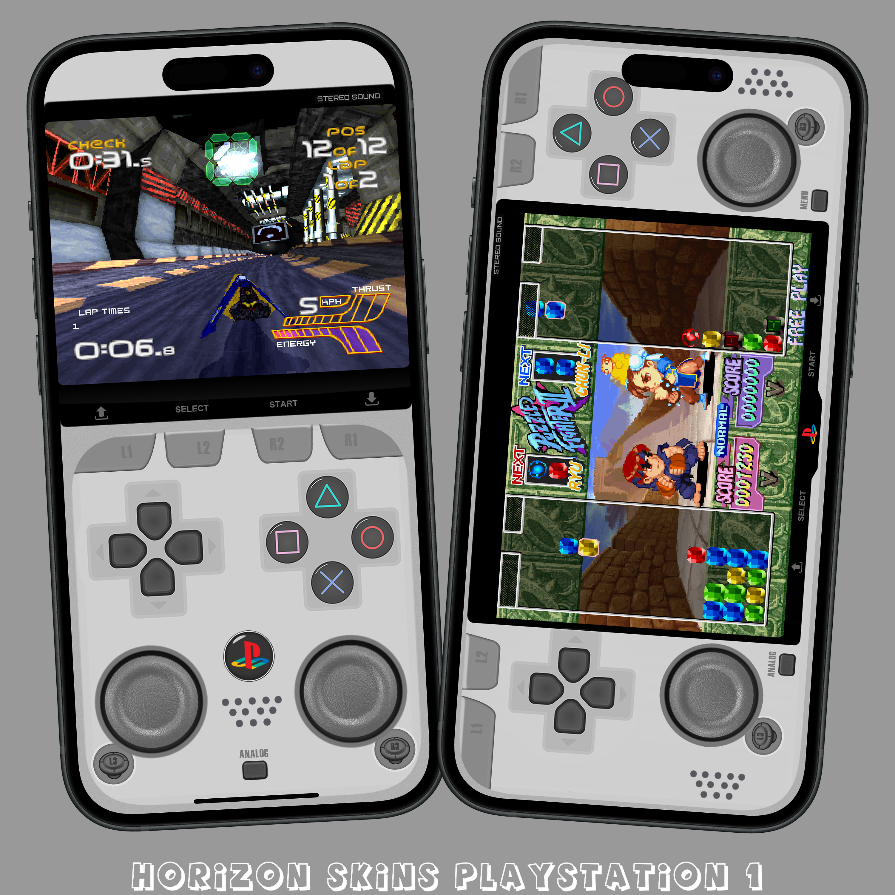 This is a PLAYSTATION 1 skin for Manic EMU, it has a 'console' looking portrait mode with ToogleFastForward, QuickLoad, QuickSave and a 'console' looking landscape modes with ToogleFastForward and QuickSave and QuickLoad, all seem to work well.
