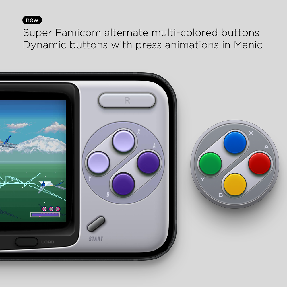 - Alternate Super Famicom multi-colored face buttons