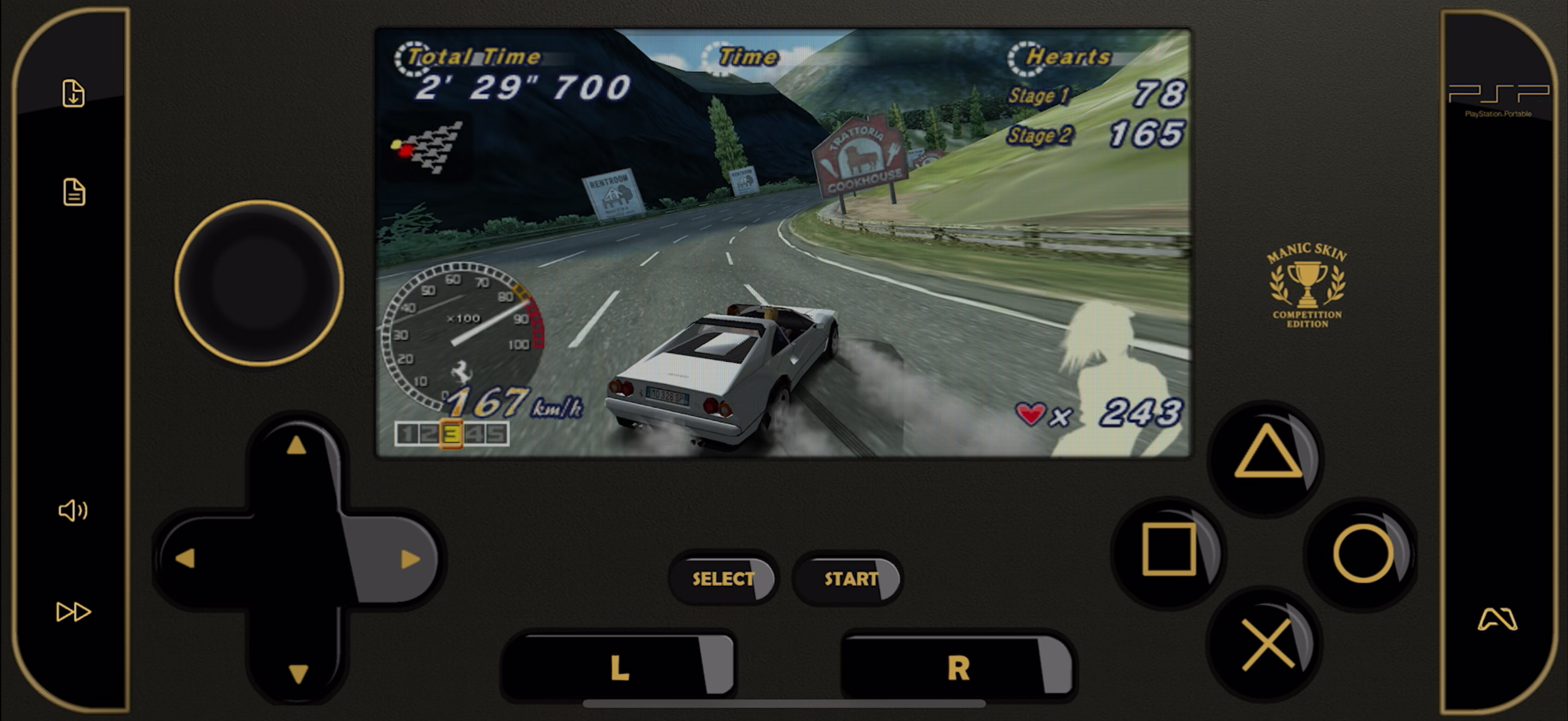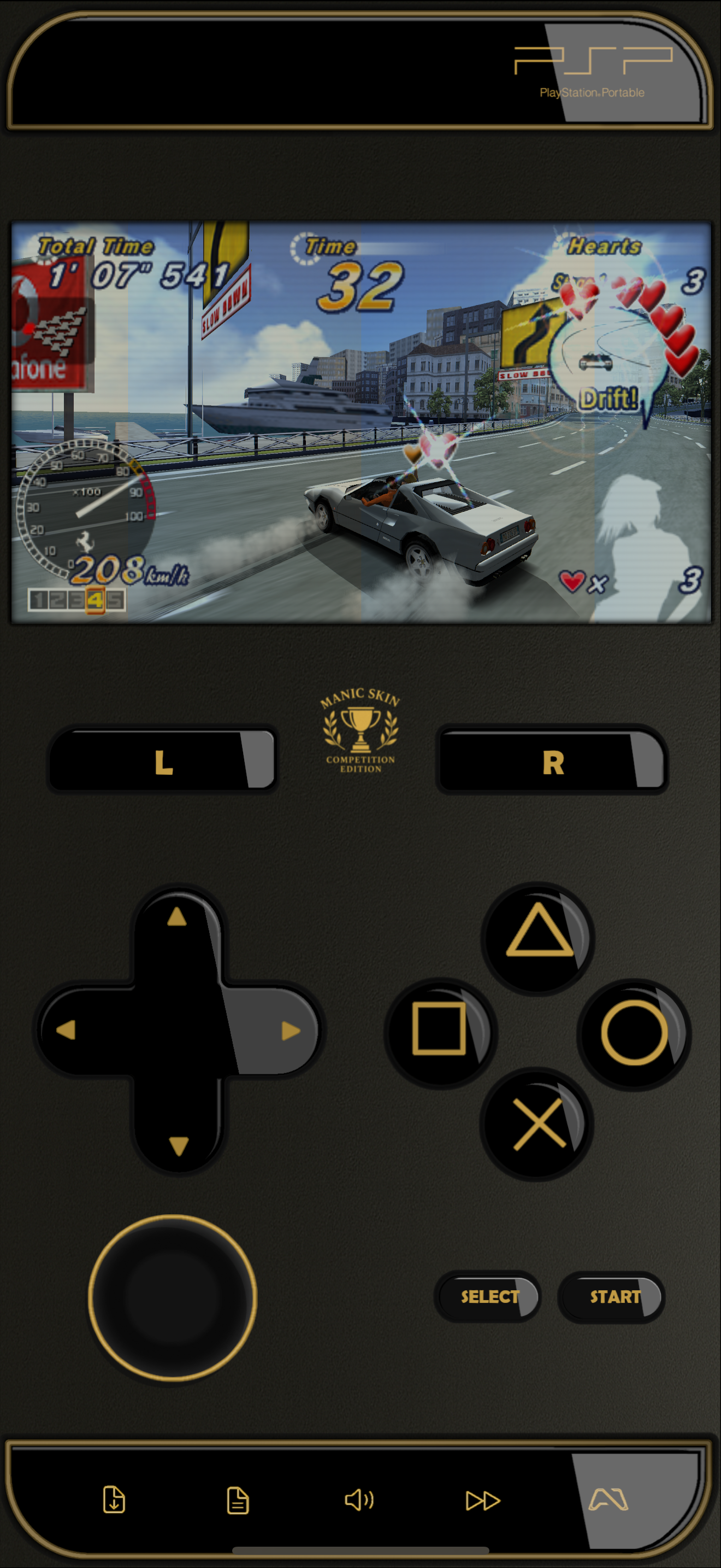 🔘 Easy access onscreen buttons for loading, saving, muting and fast forwarding