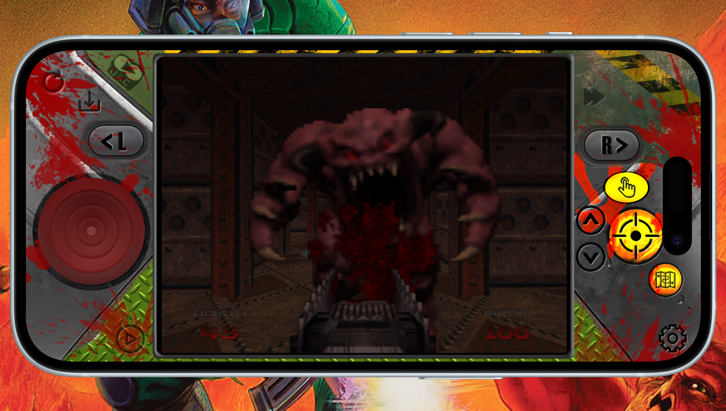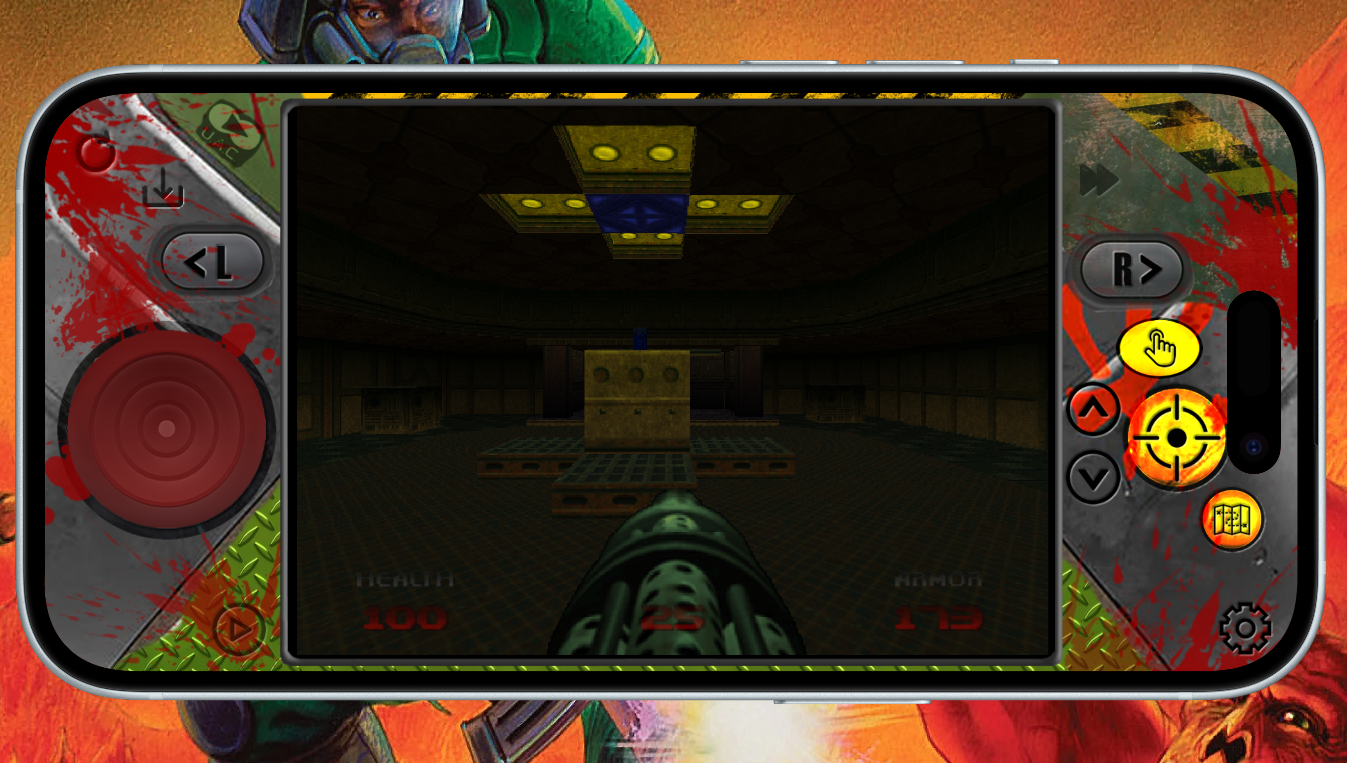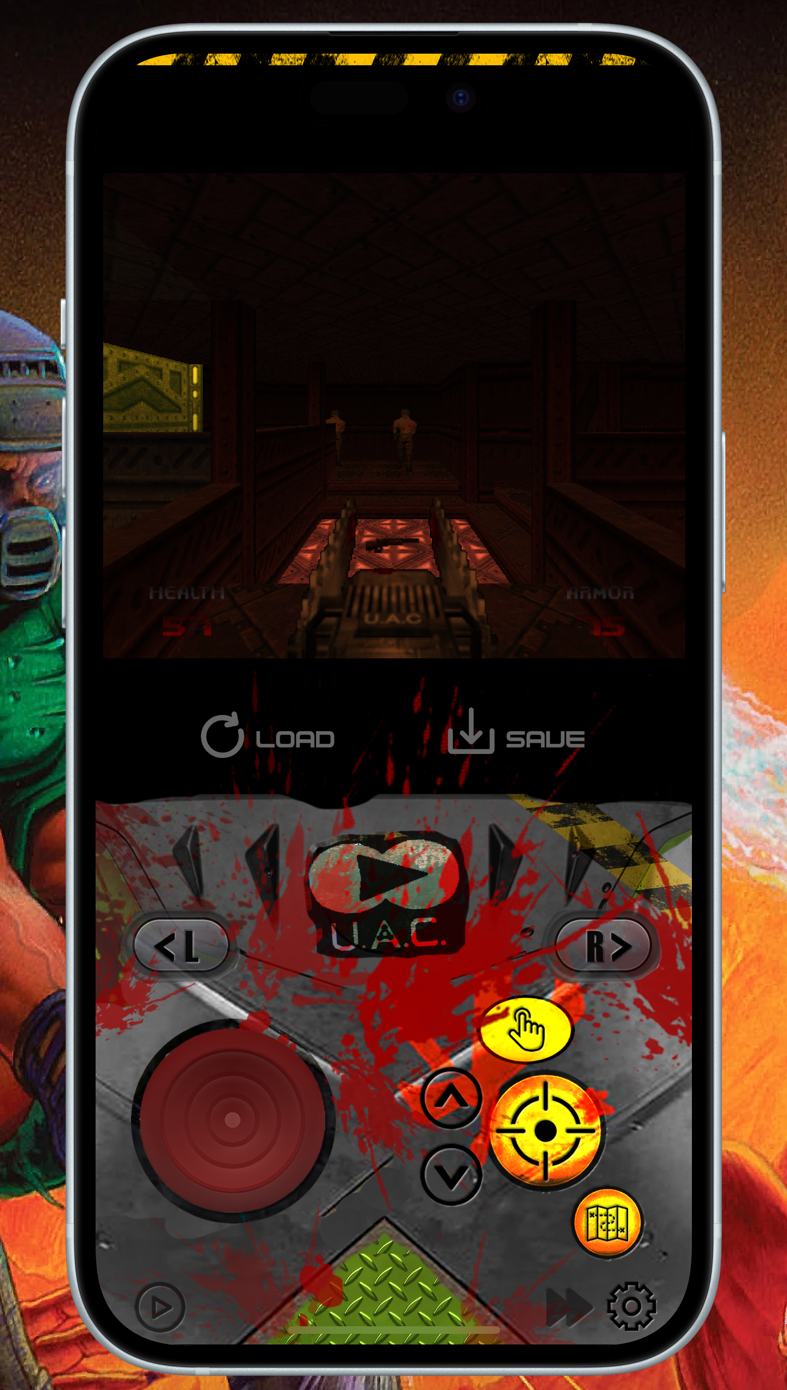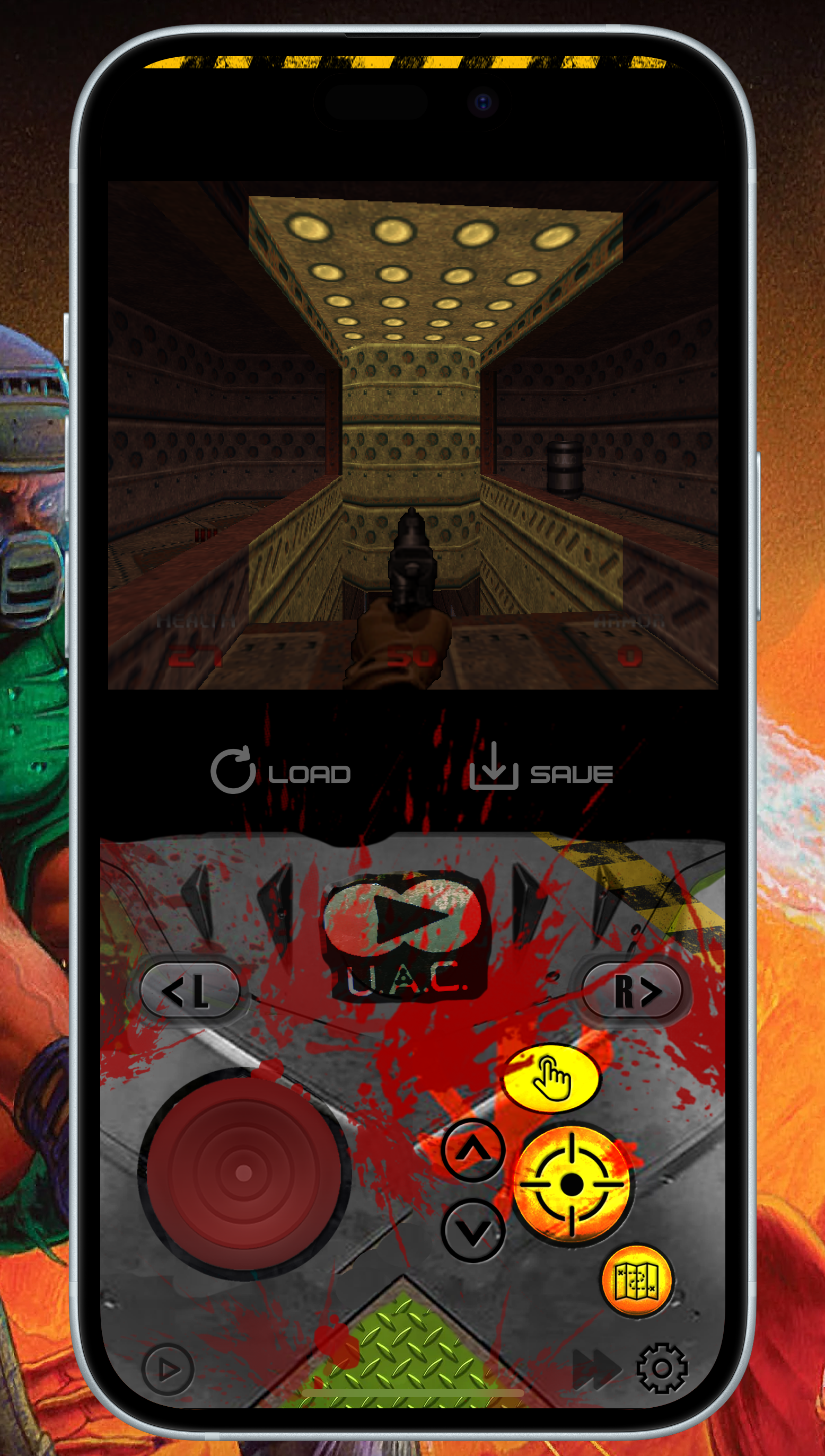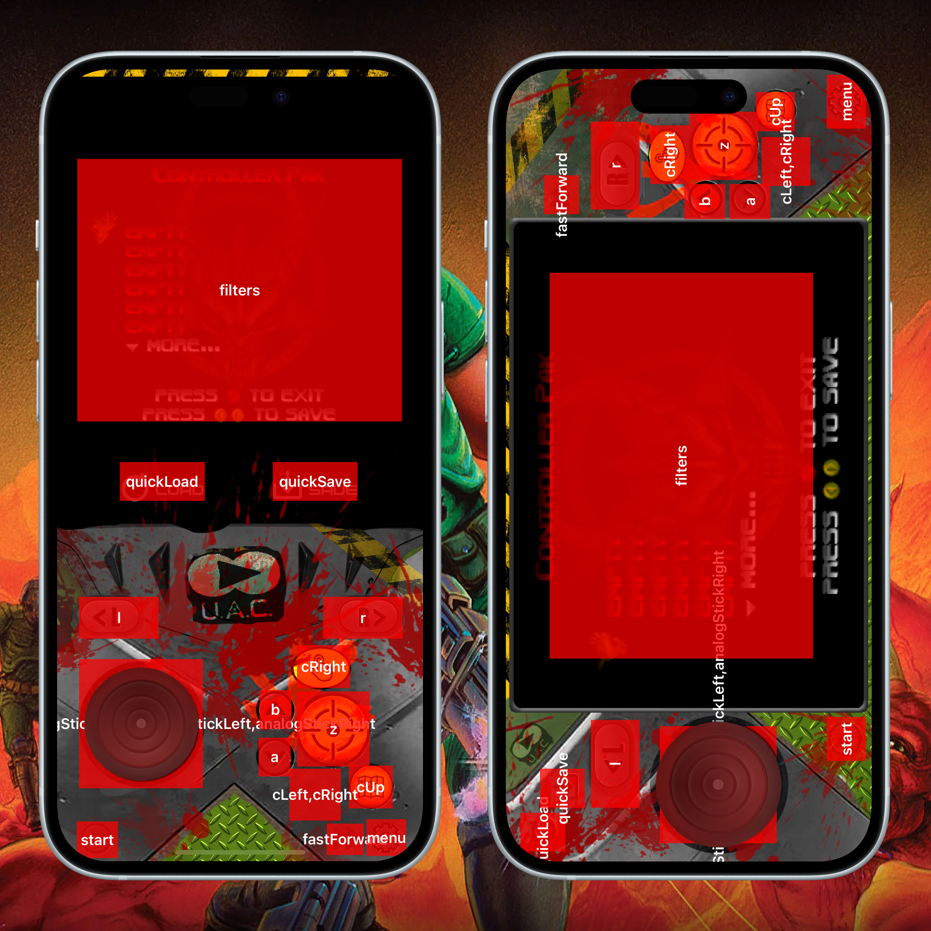 This is a N64 DOOM controller, it has a portrait mode with FastForward, QuickLoad, QuickSave and a 'controller' looking landscape mode with FastForward and QuickSave and QuickLoad, all seems to work well.