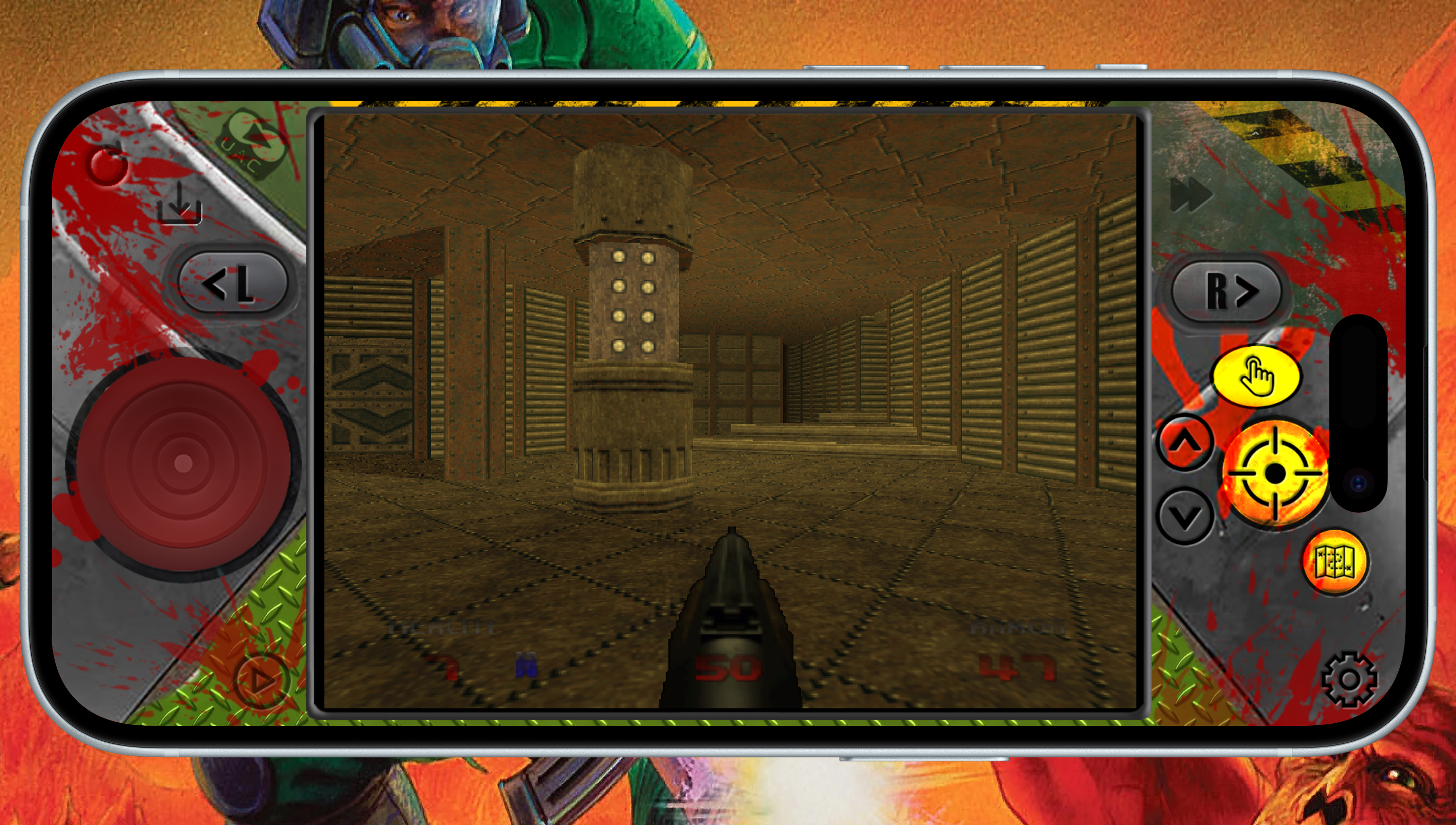 - Custom design with added buttons for STRAFE and AUTOMAP buttons.