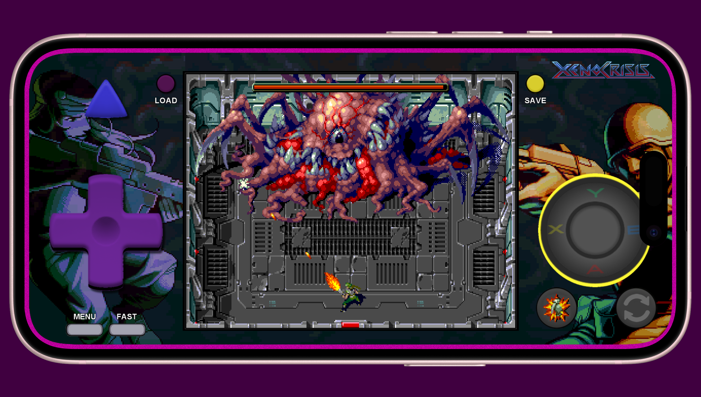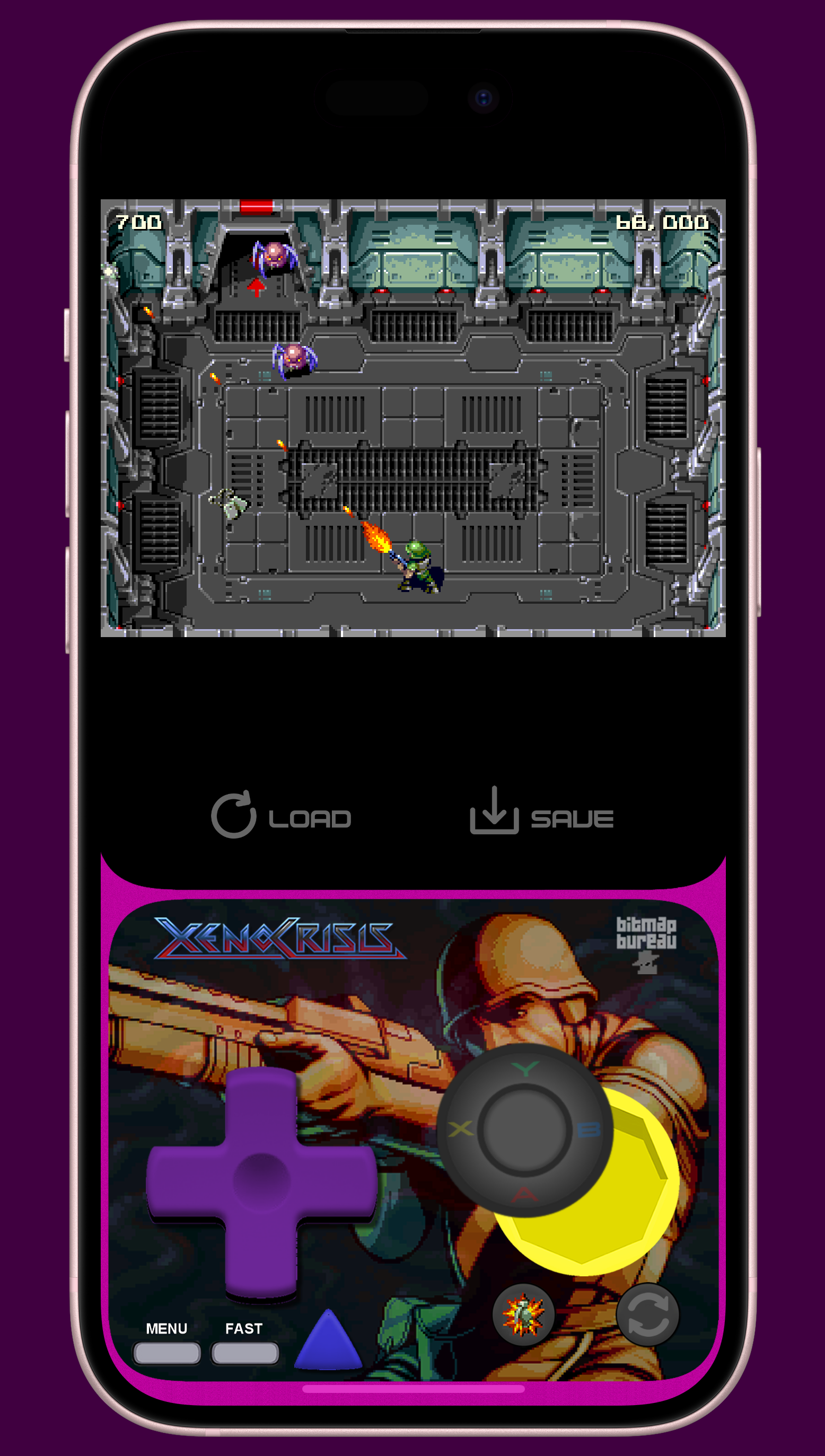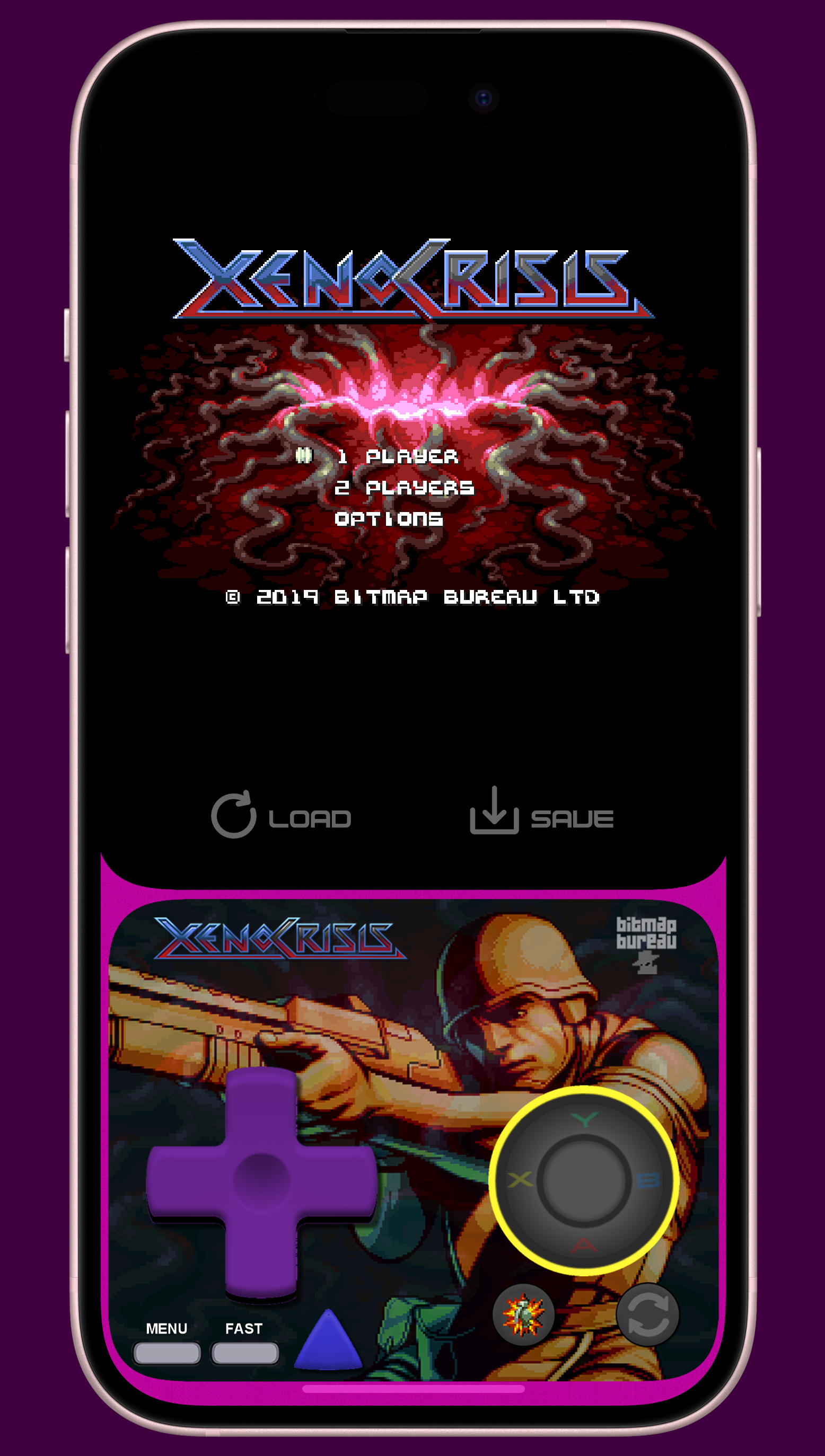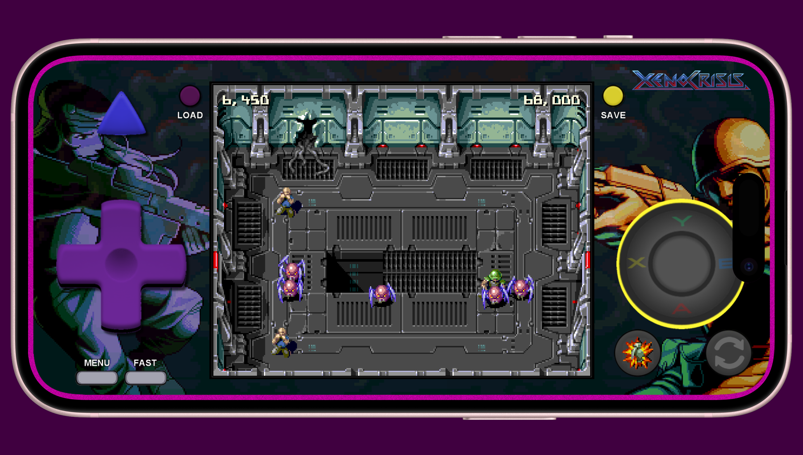 This skin has a portrait mode with FastForward, QuickLoad, QuickSave and a landscape mode with FastForward and QuickSave and QuickLoad, all seem to work well.