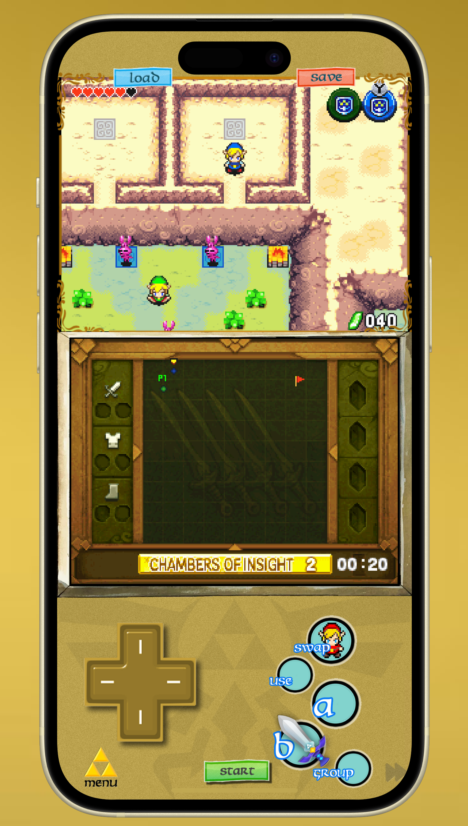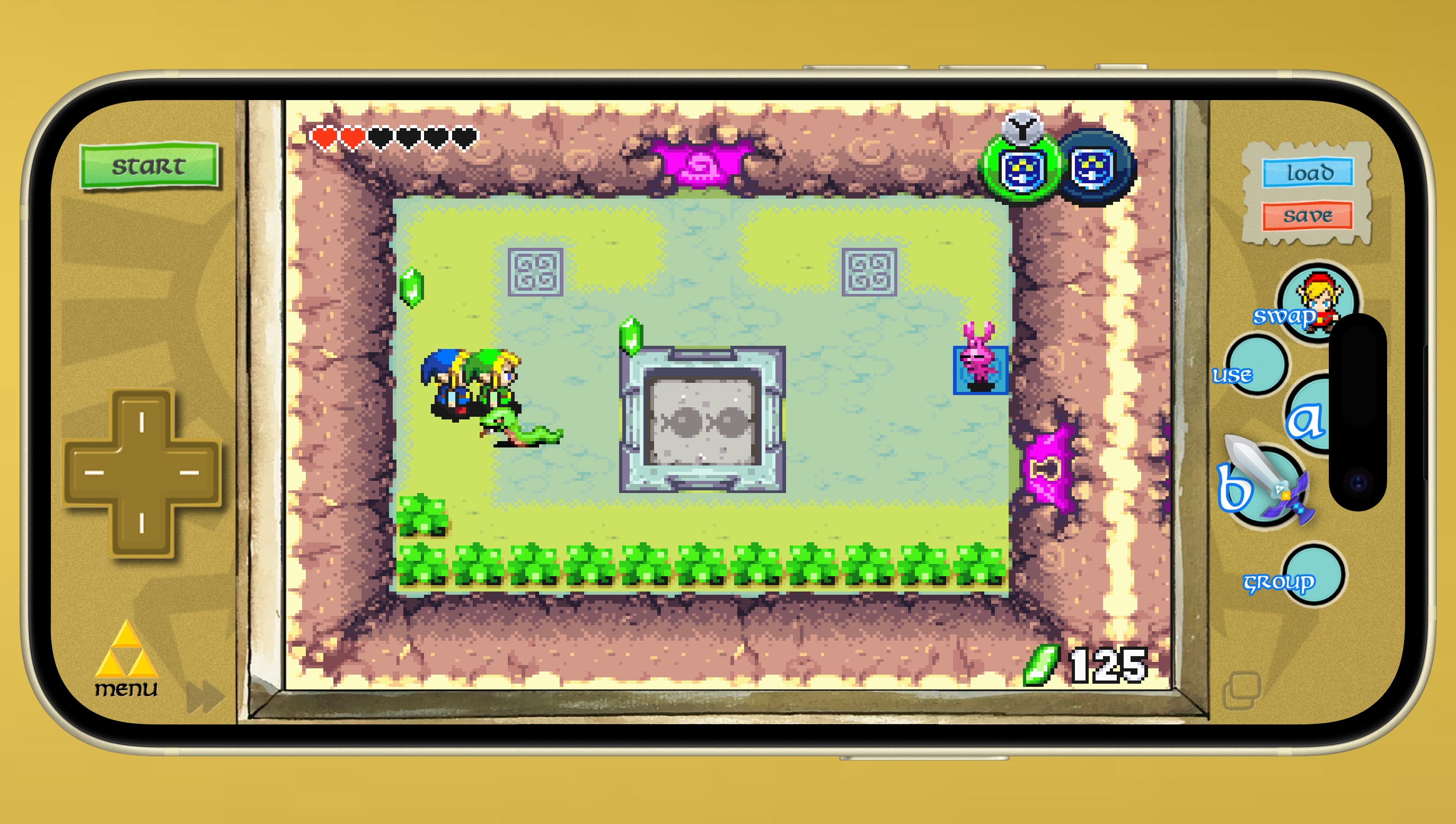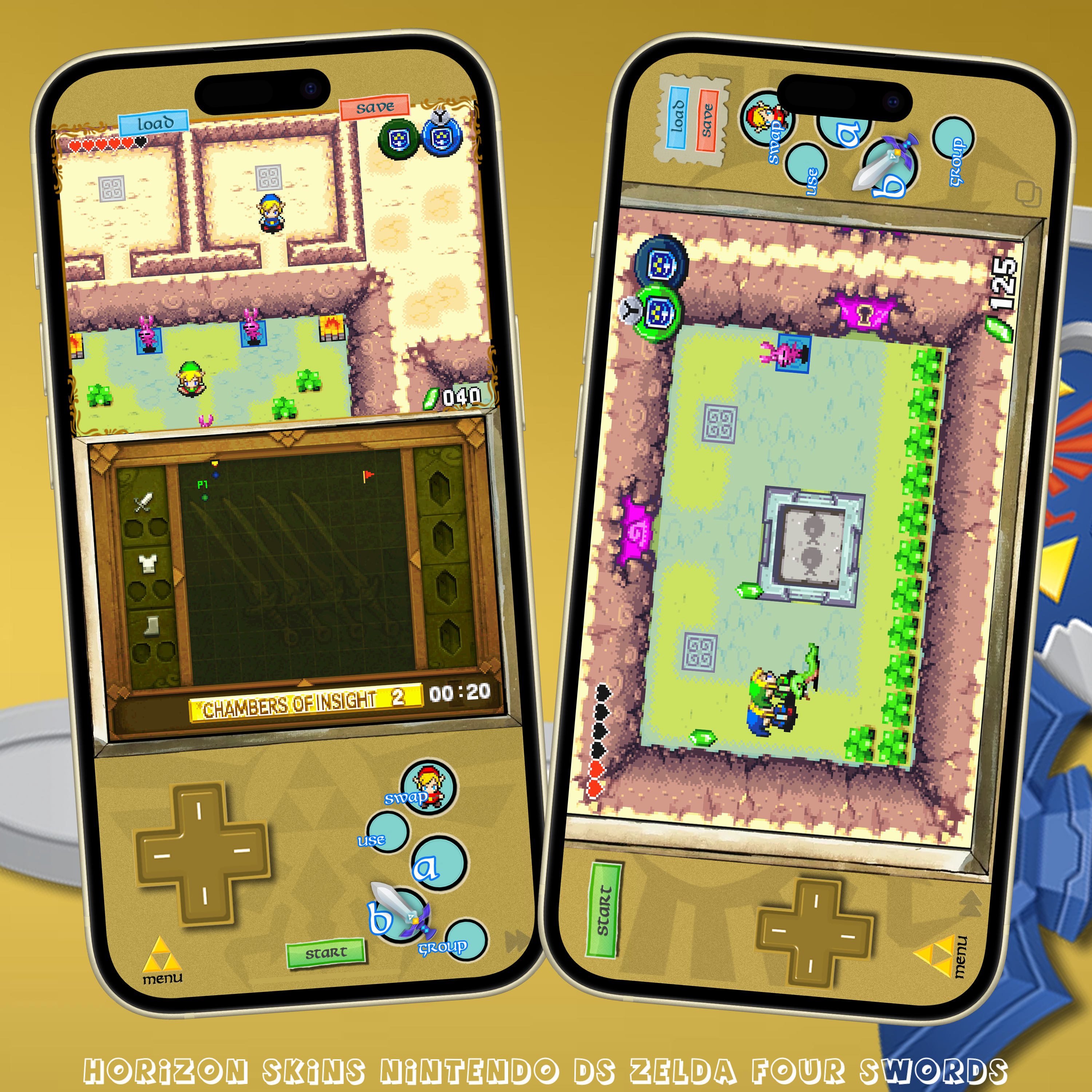 This NINTENDO DS skin is for ZELDA: FOUR SWORDS, it was a DSiWare game. It has a FastForward, QuickLoad, QuickSave, all seem to work well.