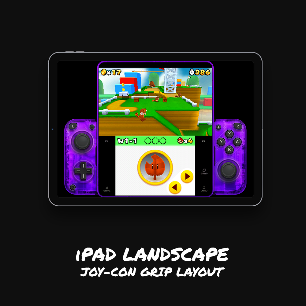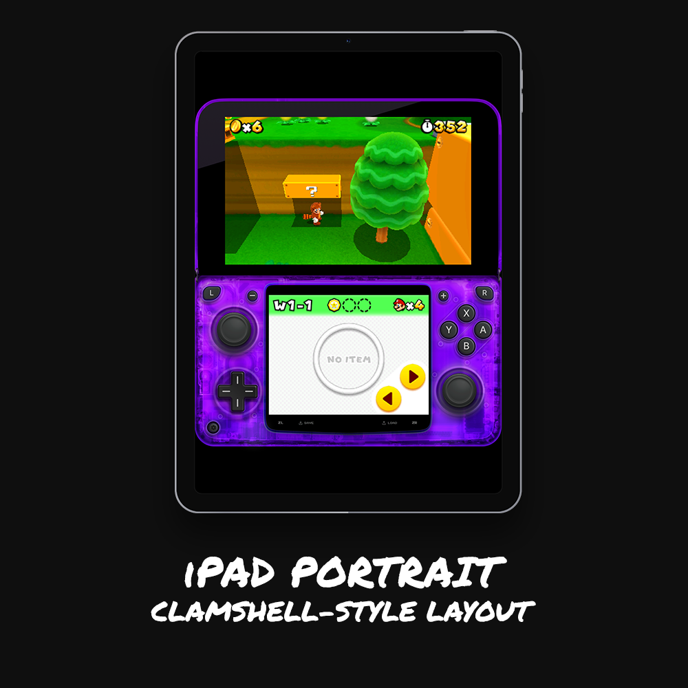 New 3DS skin for iPhone and iPad! This is my personal take on a 3DS skin, with some intentionally opinionated changes to better suit how I play 3DS games. Primarily, it's a focus on a larger screen and easy screen swapping for iPhone landscape, and a cleaner, larger bottom-screen for iPhone portrait. It also has more compact controls, with the Start and R buttons more conveniently closer to the face buttons, and less used buttons like ZL and ZR are smaller. This is also my first try at making iPad-compatible skins.
