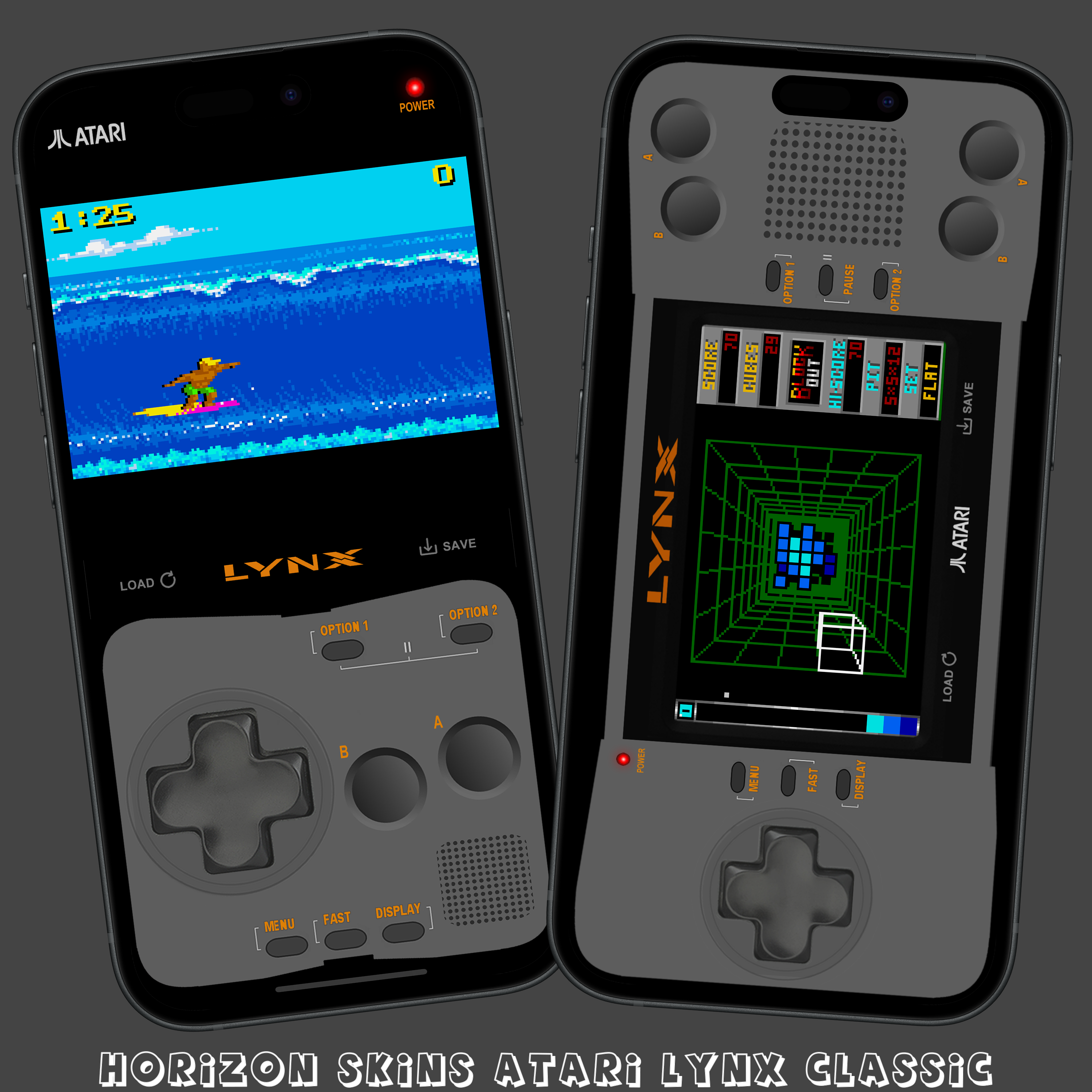 This is a ATARI LYNX skin for Manic EMU, it has a 'console' looking portrait mode with FastForward, QuickLoad, QuickSave and a 'console' looking landscape modes with FastForward and QuickSave and QuickLoad, all seem to work well.