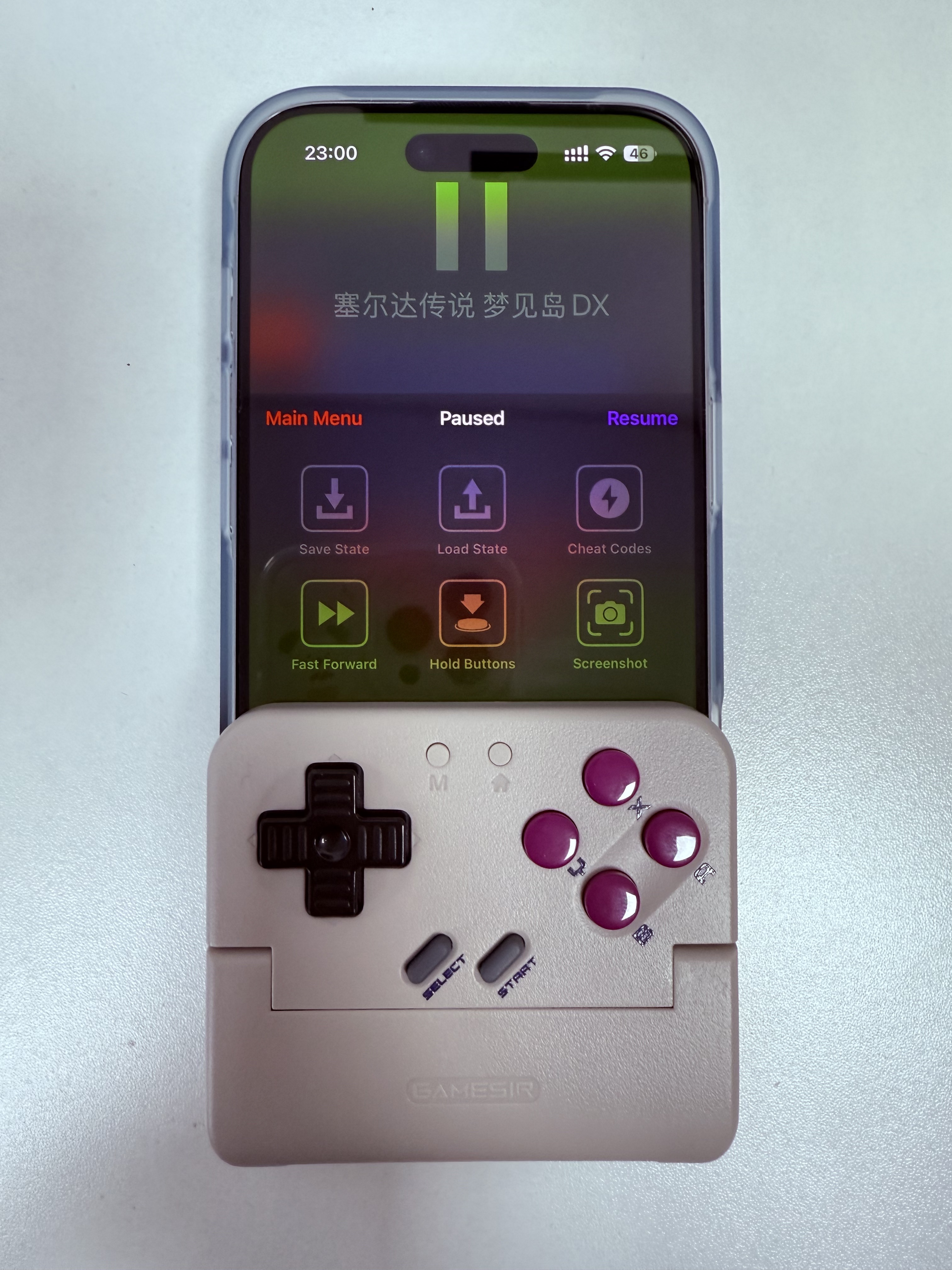 It possesses the texture, color, and screen of a genuine gaming console, with hidden features such as quick loading, quick save, and menu buttons