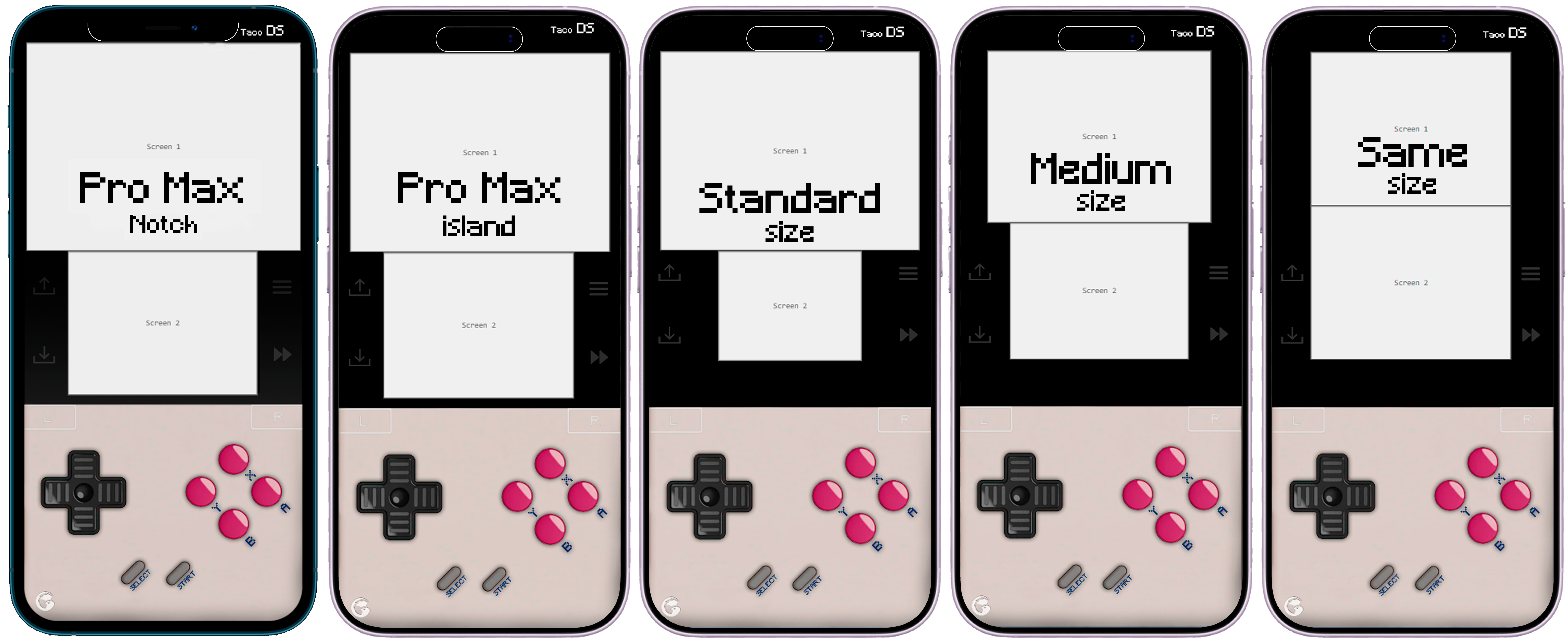 If you have an iPhone standard size with notch or dynamic island, you can use 3 different screen sizes.