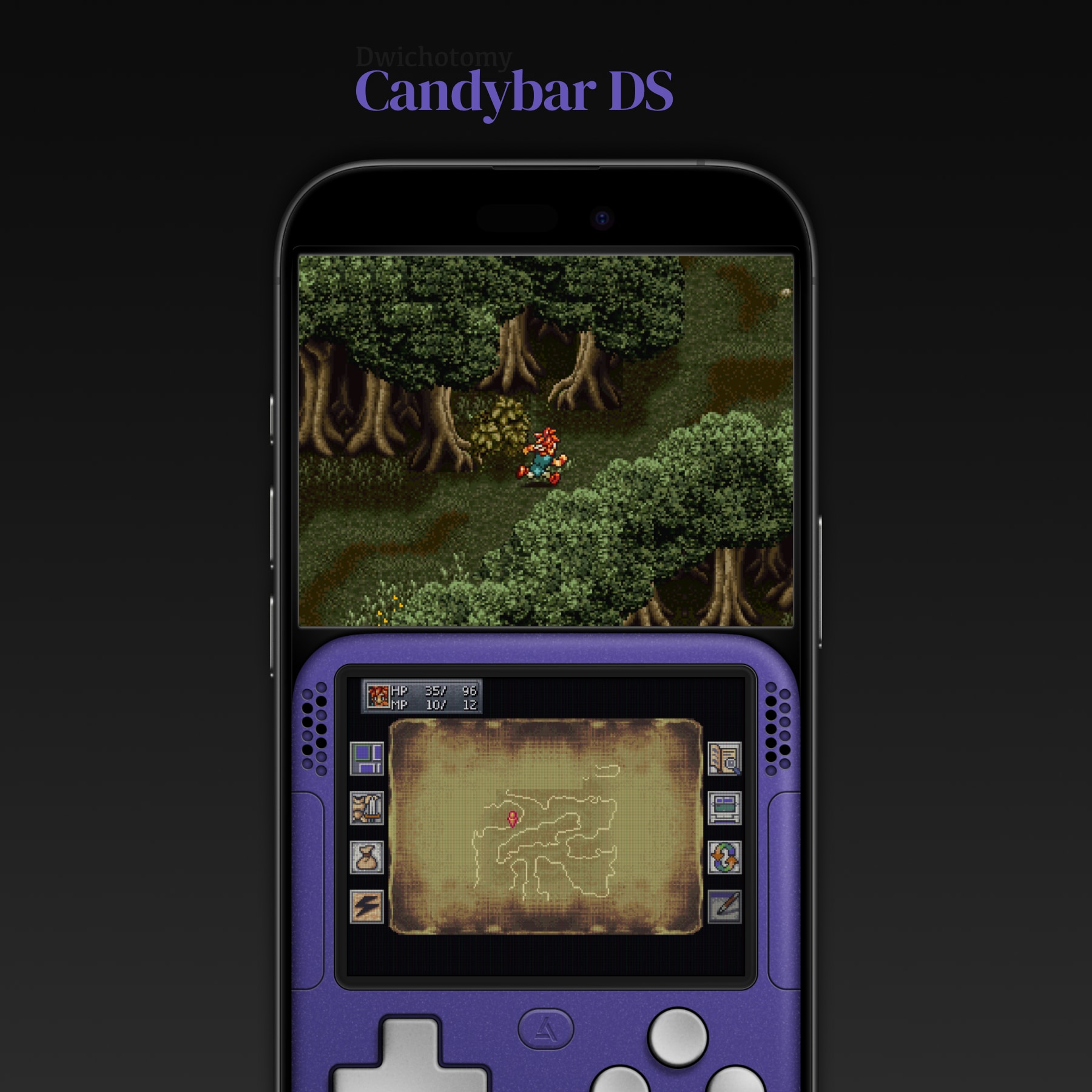 A minimalist DS skin for Delta. The design treats the top screen as an external display window while the bottom touch screen is integrated into the controller, creating the illusion of a unified hardware appearance. Available in Purple and Black. Display Variants: Default: Subtle custom pixel overlay with color fringing on the bottom screen only, providing an authentic hardware texture to the integrated display. Filtered Top Screen [Filter ON]: Faint pixel grid overlay on the top screen for added texture without loss of brightness. Non-Filtered [Filter OFF]: Clean, raw pixels for maximum brightness and clarity on both screens. Hidden Shortcuts: Quick Sa...